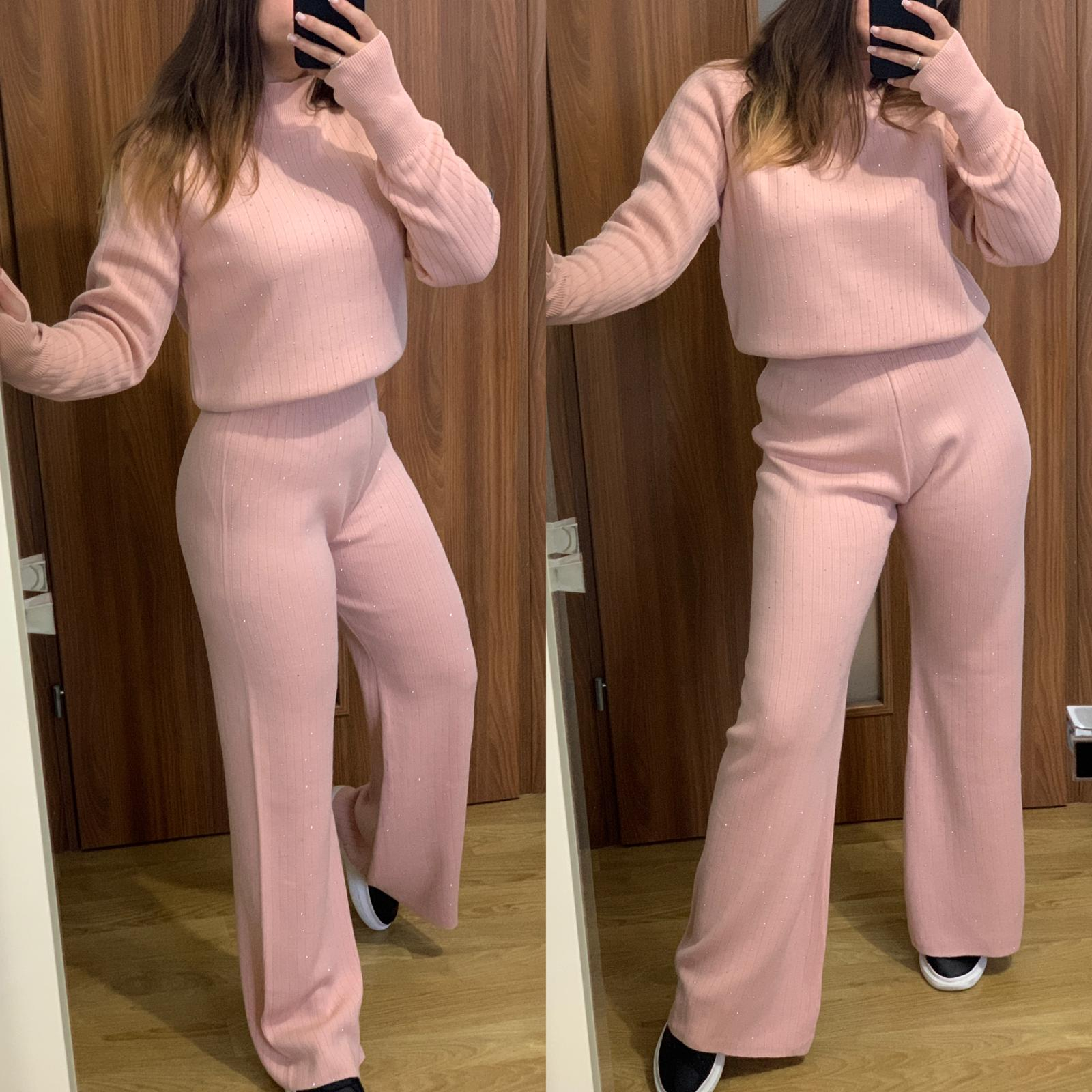 Compleu Dama Tricot Roz cu Pietricele