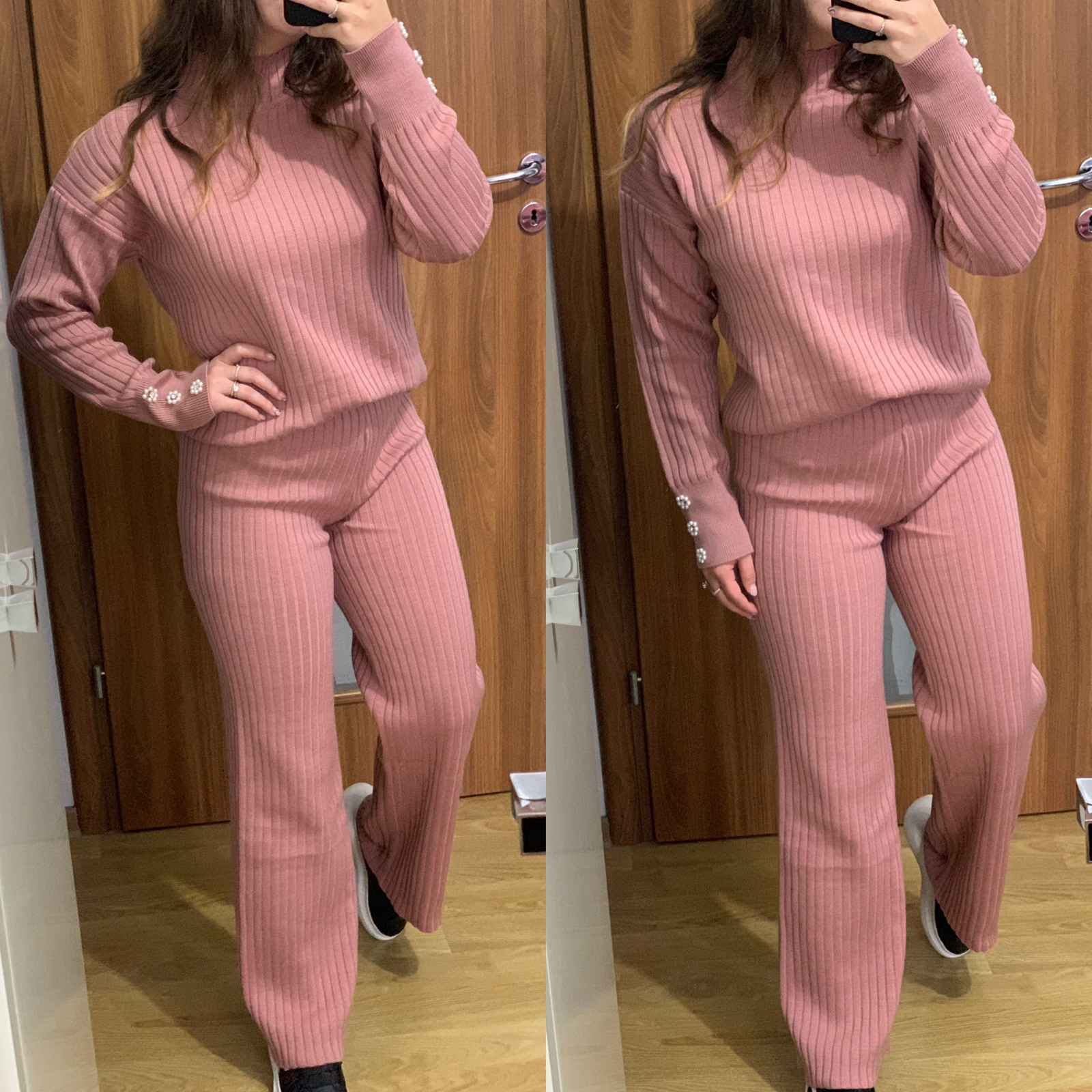 Compleu Dama Tricot Roz Pudra cu Accesorii
